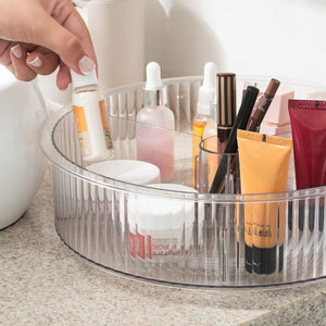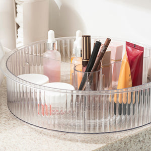 Con diseño moderno y acabado acanalado, el organizador sigue las tendencias de decoración, uniendo belleza y eficiencia. El color cristal proporciona la apariencia sofisticada del vidrio con la ligereza, resistencia y seguridad del plástico.