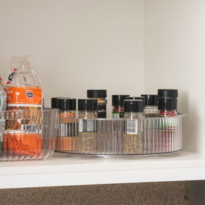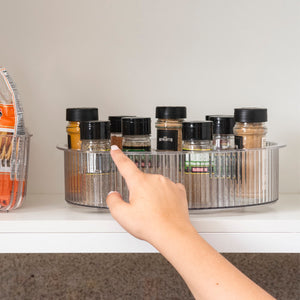Aporta más practicidad y elegancia a tu rutina con el Organizador Giratorio Coza New Retrô Ø31 x 8,4 cm Cristal. Ideal para organizar encimeras, armarios, refrigeradores y diversos ambientes de la casa, facilita el acceso a artículos como maquillaje, cosméticos, especias, botes y pequeños utensilios. Su sistema giratorio con ruedas incorporadas garantiza una experiencia de uso práctica y funcional, permitiendo alcanzar productos al fondo con total facilidad.
